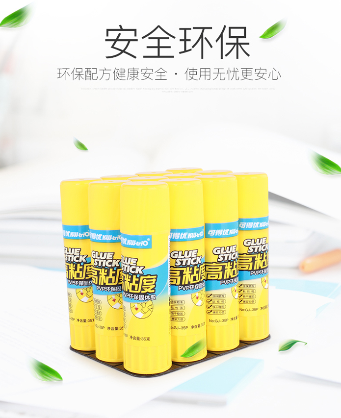 可得優(yōu)高粘度固體膠,色澤潤白,膠質(zhì)細(xì)膩,粘性持久,涂抹順滑,在升級配方后,粘性更強(qiáng),紙張間的牢固性更持久??傻脙?yōu)作為業(yè)內(nèi)的良心賣家,每一支固體膠都分量十足,持久耐用。此外再配上密封嚴(yán)禁的精密包裝,不易揮發(fā),使膠體保濕更持久,涂抹更流暢