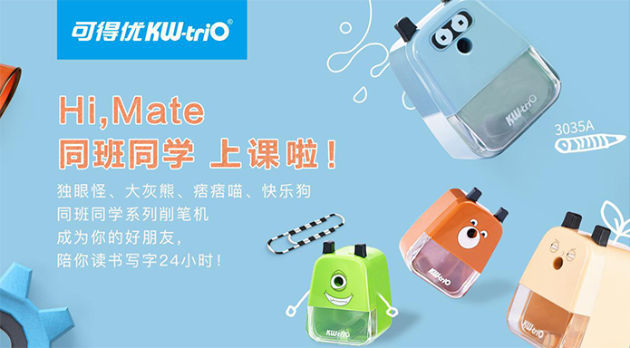 削筆機(jī)作為鉛筆的輔助工具,在背后默默地付出著。一個(gè)好的削筆機(jī)評(píng)價(jià)標(biāo)準(zhǔn)有很多,可愛(ài)卡通的造型、經(jīng)濟(jì)實(shí)用的機(jī)身、快捷省力的操作等。可得優(yōu)KW-triO作為文具界的大咖,秉持著這些理念,推出了新品同班同學(xué)系列削筆機(jī)。