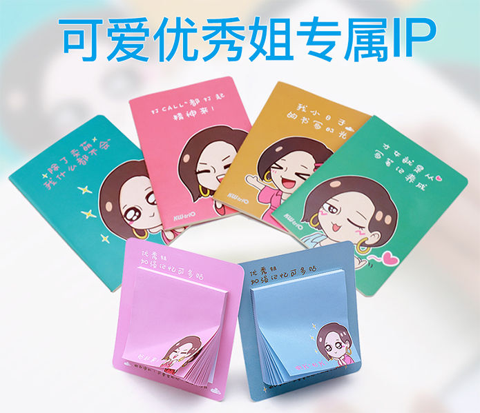 可得優(yōu)優(yōu)秀姐的人物形象主要用于漫畫、文案、包裝、產(chǎn)品、廣告宣傳、形象推廣等,目前已上市的有優(yōu)秀姐線裝軟抄本和優(yōu)秀姐便利貼,可得優(yōu)將會(huì)持續(xù)研發(fā)更多優(yōu)秀姐形象周邊,讓優(yōu)秀姐形象深入人心,為人們帶來(lái)更多正能量的影響。