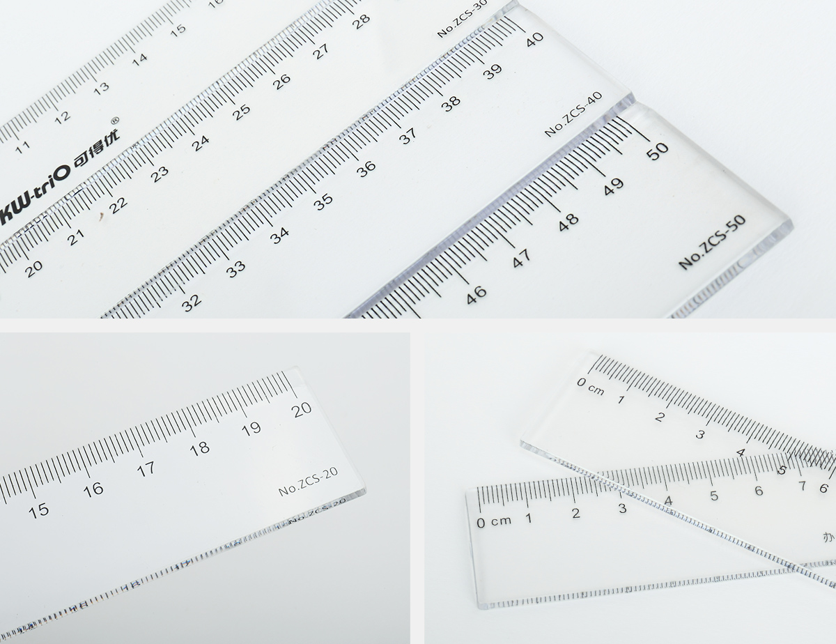 可得優(yōu)系列透明直尺,優(yōu)質(zhì)PVC原材料晶瑩剔透,刻度清晰準(zhǔn)確