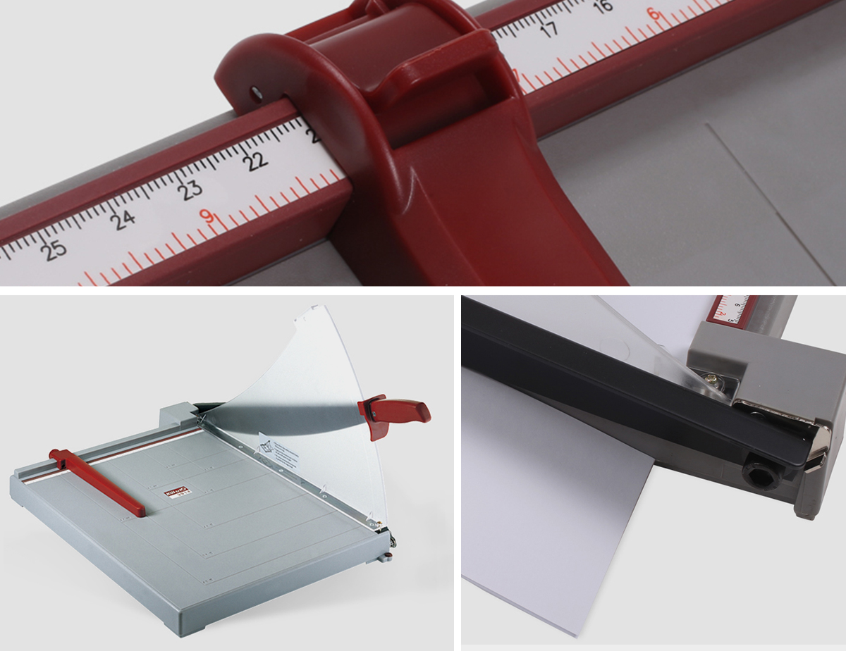 適用于裁切相片卡片和藝術(shù)紙張等 側(cè)面附帶安全防護(hù)板 有效保護(hù)操作安全 鎖刀開關(guān) 結(jié)束操作可鎖定刀芯保障安全