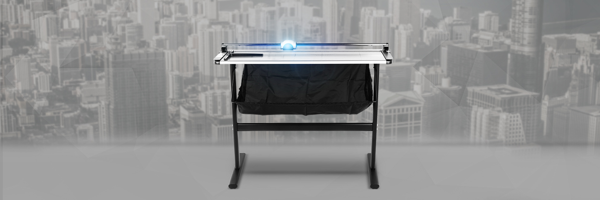滾動(dòng)刀頭,精鋼刀刃,寬幅工作臺(tái),標(biāo)尺刻度清晰耐磨,金屬立式支架,