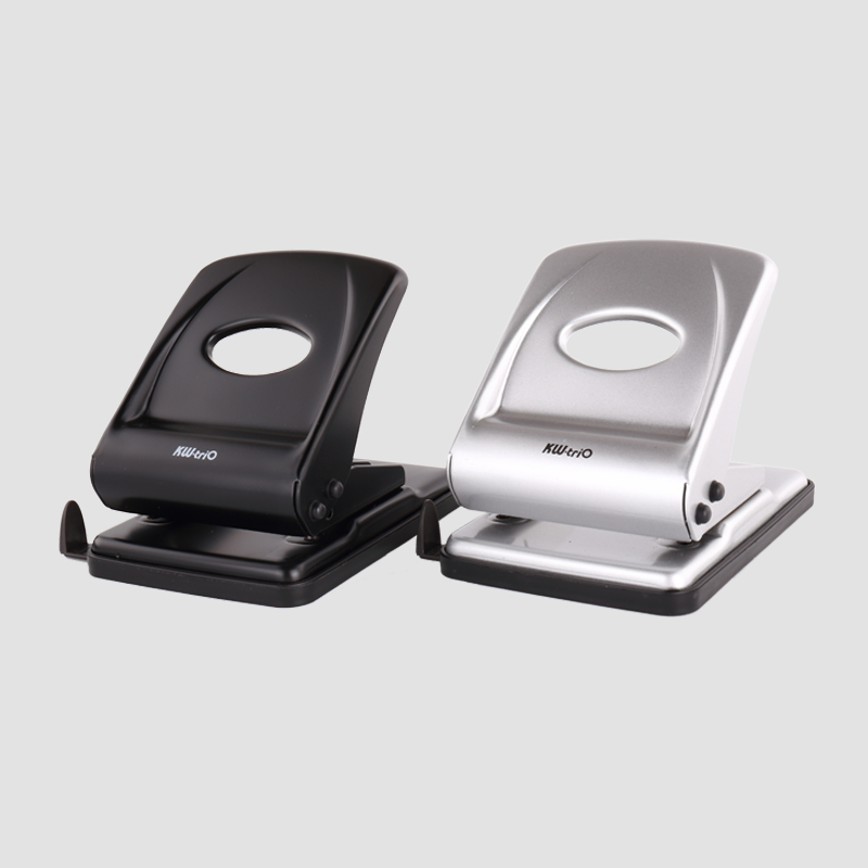 美觀外觀設計,金屬烤漆機身堅固耐用,配備金屬刀頭,附有導尺定位打孔,底墊攜帶紙屑收集裝置。