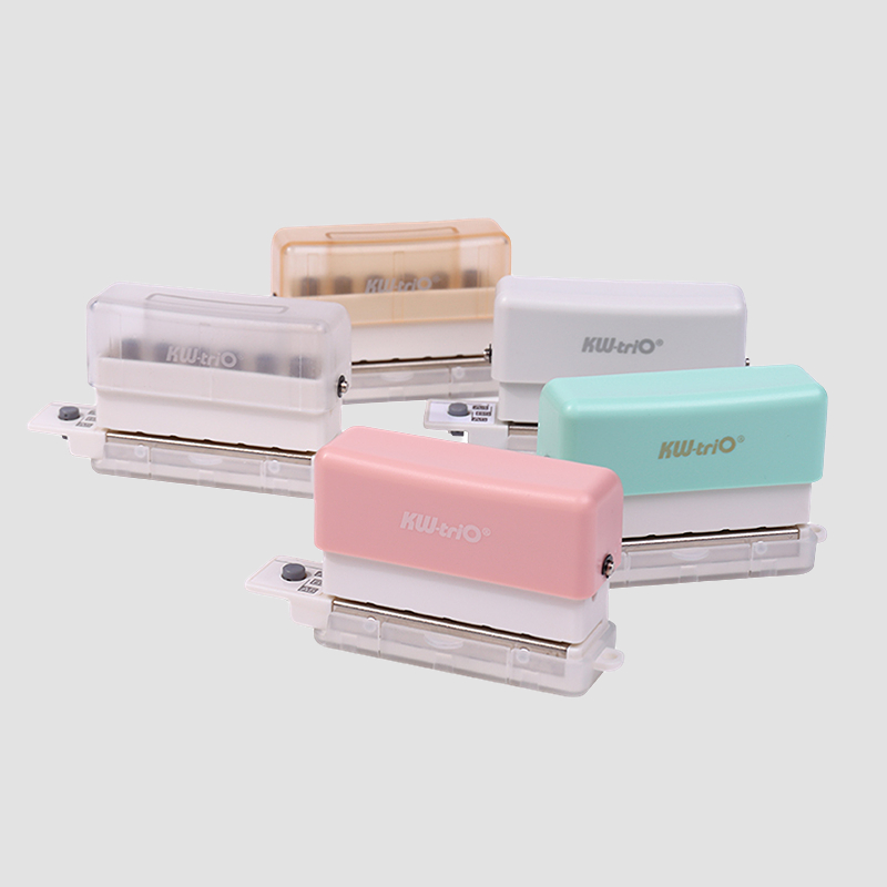 用于自制活頁(yè)紙 適配20/26/30孔活頁(yè)(A5/B5/A4) 底部廢紙槽收納,不怕紙屑亂飛 側(cè)邊圓孔可掛吊飾或當(dāng)鑰匙扣