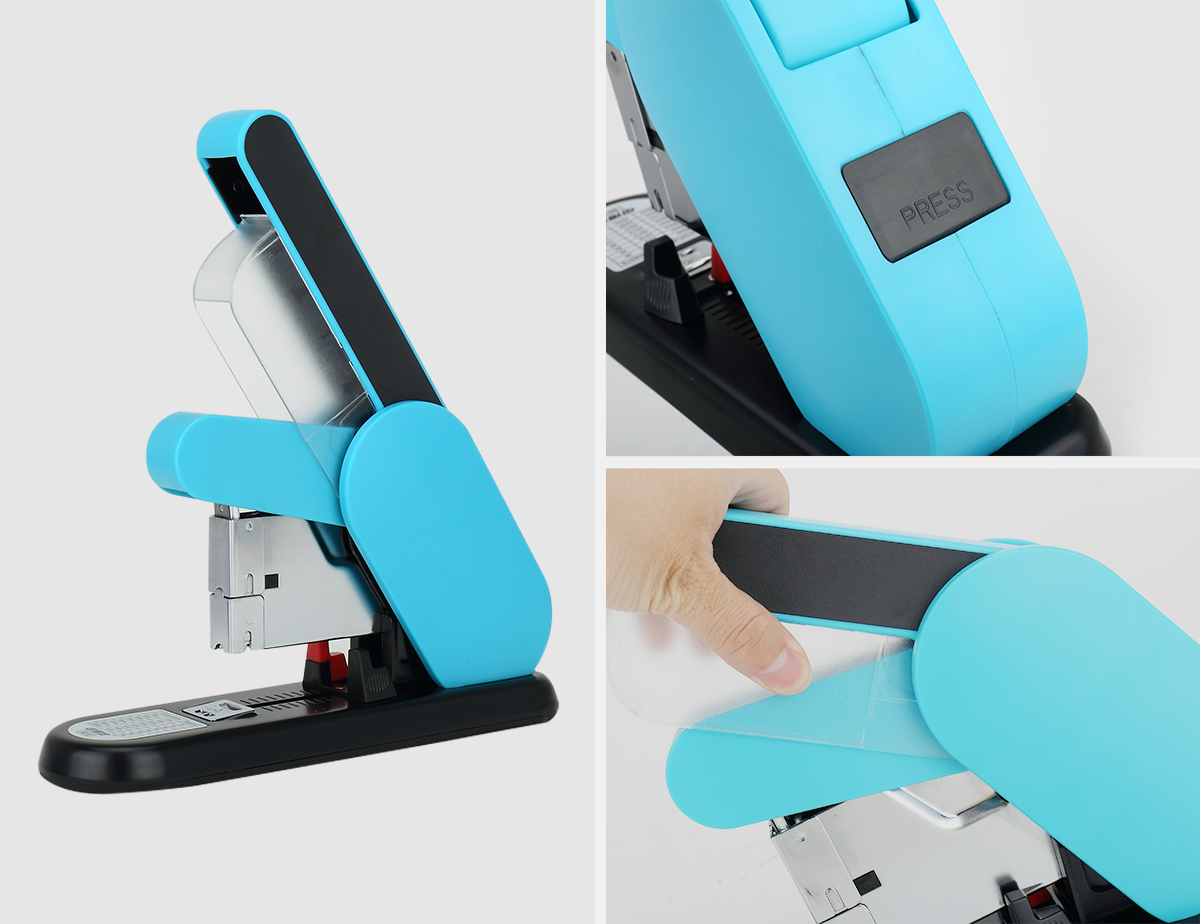 “彈閘式”置針槽,一次可裝訂210頁紙,辦公室的高效幫手。